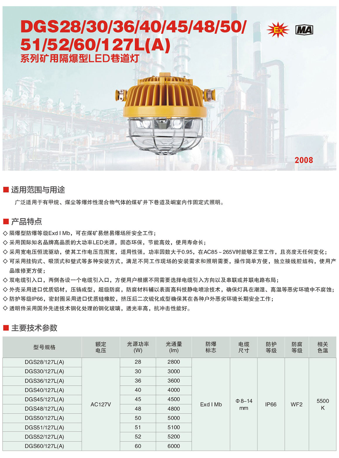 产品中心 矿用LED巷道灯系列 DGS系列矿用隔爆型LED巷道灯