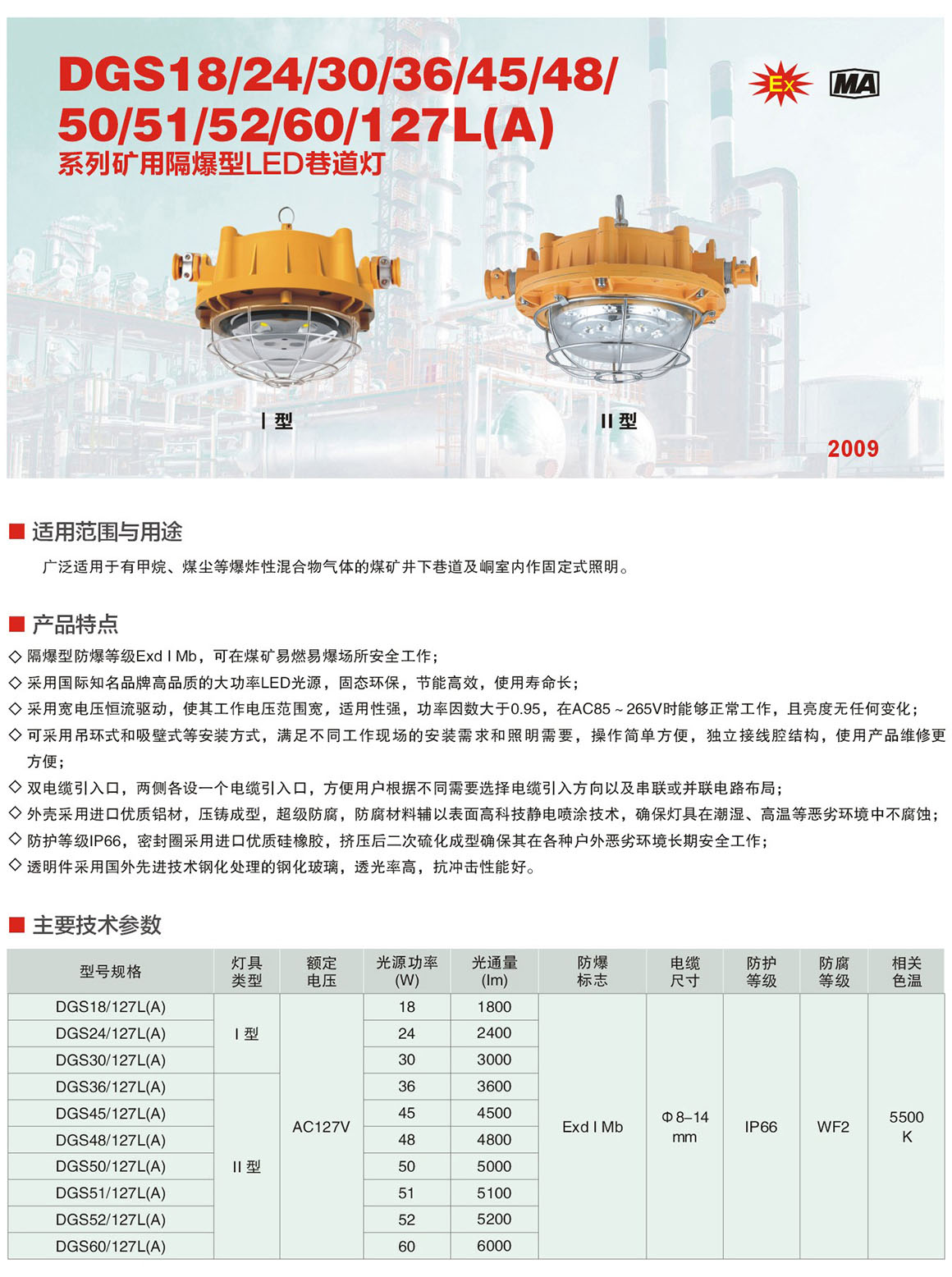 产品中心 矿用LED巷道灯系列 DGS系列矿用隔爆型LED巷道灯
